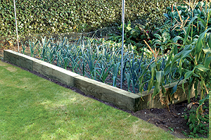 Pressure Treated new softwood sleepers – ideal for garden landscaping and raised flower or vegetable beds. Safer for garden and leisure use than traditional reclaimed railway sleepers.